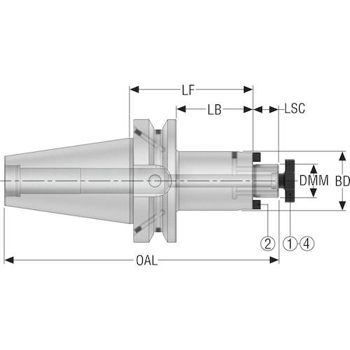 カタログ品番:BT40TFADB-SM22-120-F3L1 特長:●テーパーフェイス(2面拘束)主軸用ホルダです。 仕様:●LB(mm):93.0●LF(mm):120.0●OAL(mm):204.4