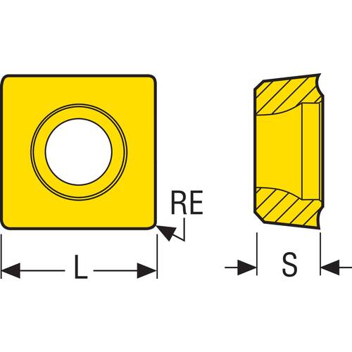 カタログ品番:SCGX070308-P1 特長:●4 コーナー仕様、最新のインサート材種と形状で各種被削材に対応してます。 仕様:00059713●パフォーマックスドリル用チップ 外刃用 PVDコーティング材種