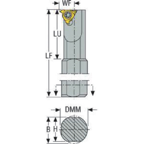 カタログ品番:SNR0010K11 特長:●スクリュークランプ式の内径ねじ切りホルダです。 仕様:●B(mm):15.5●H(mm):14.0●LF(mm):125.0●WF(mm):6.5●SECO ねじ切り用内径ホルダ