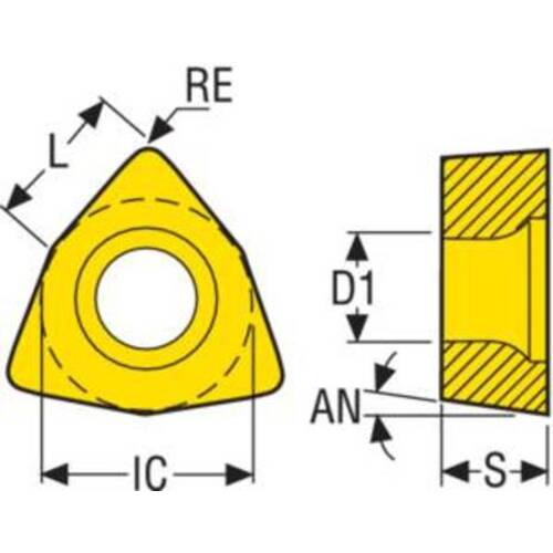 カタログ品番:WBGT030102L 特長:●汎用性の高いPVDコーティングインサートとなります。すべての被削材に適したインサートです。 仕様:●D1(mm):2.36●AN(deg):5.0●L(mm):5.0●RE(mm):0.2●S(mm):1.59●SECO ポジインサート 汎用PVDコーティング