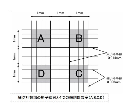 グリッド線がシンプルで細胞計数に適しています。サイズ(mm):65×24×3