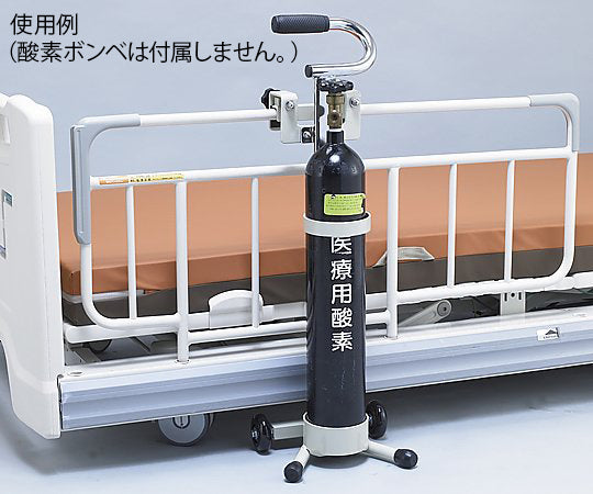 転倒防止のために、サイドレールに固定できる固定ホルダーが付いたボンベキャリーです。
