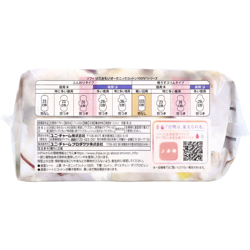 ソフィ はだおもい オーガニックコットン100% 極うすスリム 軽い日用 羽なし 17.5cm 30個入 1 個