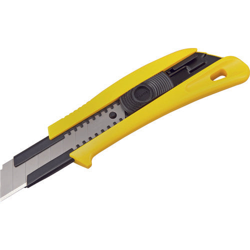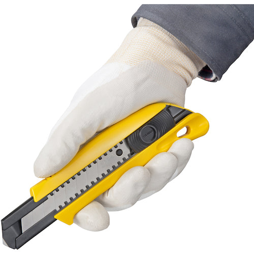 カタログ品番:DC610/Y 特長:●張り・腰の強い0.65mm厚刃です。●高耐久設計の汎用J型カッターです。●曲り・しなりにくい22mm幅ピッチです。●あらゆる内装材切断や・削剥に最適です。●切る・突く・こじる焼入れ爪スライダーは確かなクリック感の伝わる精音スライダー機構です。●引く力をあまさずブレードに伝える根元が太い新グリップ形状です。 用途:●深切り・剥しに強い職専カッター 仕様:●全長(mm):180●刃厚(mm):0.65●刃長(mm):100●適合替刃:CB62-7H/Y●色:黄色●タイプ:オートロック式●断熱材、石膏ボード、ベニヤ板などの切断用●J型極厚替刃ホルダー●強度3.5倍1mm厚の硬質焼入れホルダー(当社比) 材質/仕上:●本体:ABS樹脂●ホルダー:ステンレス●刃:炭素工具鋼(SK120) 注意:●本体に刃は付属していません。