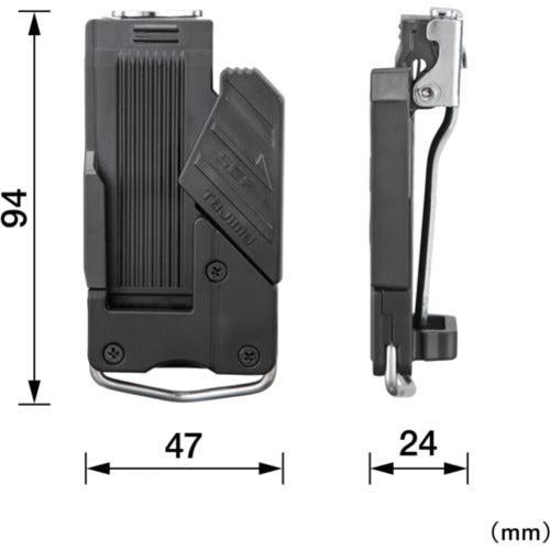 カタログ品番:SFC-CHLD 特長:●セフホルダー胴ベルト用 クリップ式 右用●作業着のポケットや腰袋のフチにも取付可能●セフが不意に外れにくいロック機構付●安全ロープ取付環付●軽さ重視の樹脂タイプ●※本製品のクリップベースをロックしないで使用する場合は、落下する危険があります。●高所での使用はしないでください。●落下による破損に注意してください 用途:●セフ着脱式ホルダー 仕様:●幅(mm):47●奥行(mm):24●高さ(mm):94●色:黒●タイプ:通常幅●適合ベルト幅(mm):50●材質:樹脂●固定方法:クリップ式●対応ベルト:幅50mm以内、厚み3mm以内●ベルトに掛かる重量:3kgまで 材質/仕上:●本体:樹脂(ABS)●クリップ:スチール 注意:●体重を支える金具ではありません。●安全性確保のため、指定された重さ以上の工具及び、その他の製品には使用しないで下さい。●製品仕様は予告なく変更する場合がございます。●予めご了承ください。
