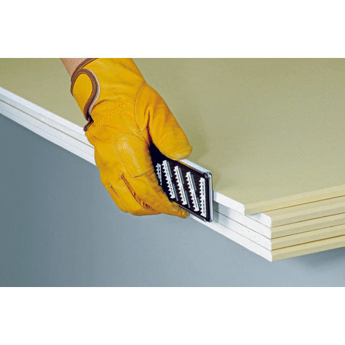 カタログ品番:TBY-SH180 特長:●タイガースーパーハードが削れます。●耐久性は鬼目ヤスリの10倍のファインセラミック刃です。●刃がスイングするシャトル構造です。●握って引くことに配慮したグリップ形状はエラストマーを装着しています。 用途:●超硬質石膏ボード切削用ヤスリ。 仕様:●長さ(mm):180●幅(mm):49●厚さ(mm):18●研削部:荒目/細目(両面)●奥行(mm):49●高さ(mm):18●入隅部:アルミダイカスト刃●ガイド付●エラストマー装着グリップ 材質/仕上:●刃:ファインセラミック●グリップ:エラストマー樹脂