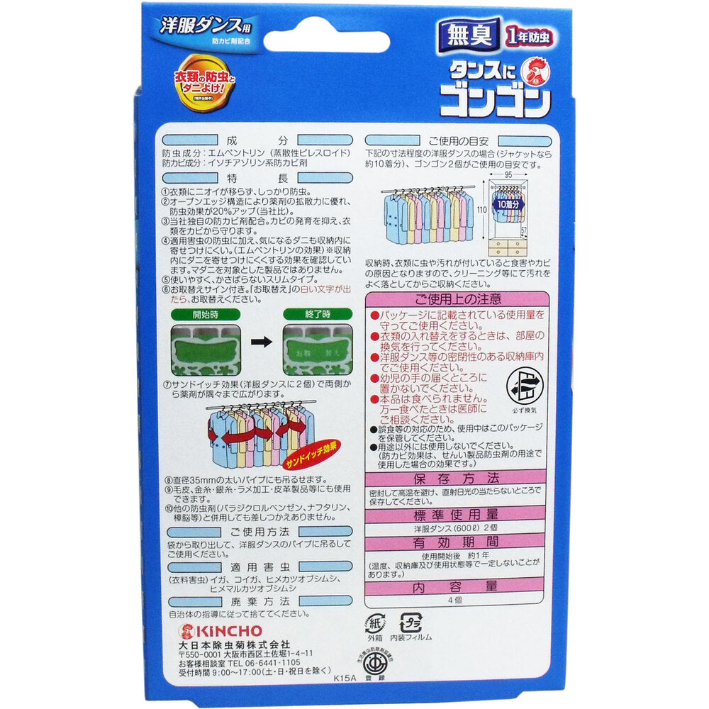 タンスにゴンゴン 洋服ダンス用 無臭 1年防虫 4個入 1 個