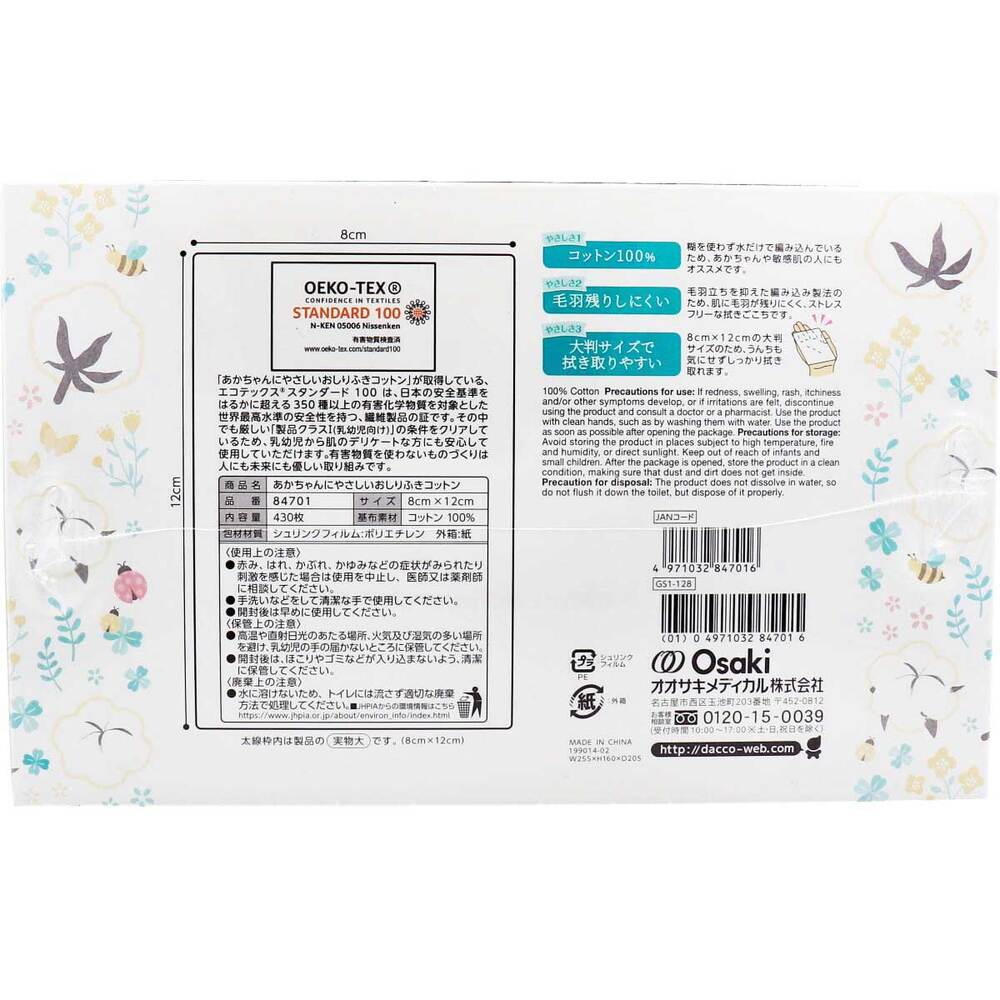 ダッコ 赤ちゃんにやさしい おしりふきコットン 約8cm×12cm 430枚入 1 個
