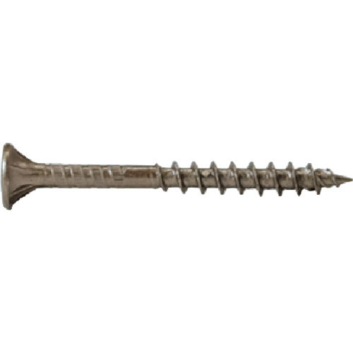 カタログ品番:V-WDX045-SX 特長:●ウッドデッキ材の施工に最適です。ラスパート処理でさびに強く、仕上りがキレイです。●施工性抜群の深い四角穴です。●座掘りして板を押さえるフレキ付きです。●入りやすいのこぎり刃です。●木割れを防ぐ先端カット刃付です。 用途:●ウッドデッキ材の施工に。 仕様:●寸法(mm)d:4.4●全長(mm):45●ねじ部長さ(mm):27●頭部径dk(mm):8.5●箱入●四角穴2番 材質/仕上:●本体:鉄●表面処理:ラスパートブロンズ色 セット内容/付属品:●四角2番ビット×1本