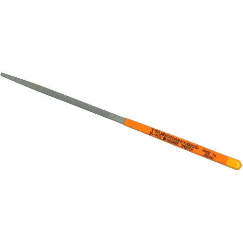 カタログ品番:KA010-03 特長:●目立てが鋭く、耐久性に優れています。全面に刃が刻まれています。●03(細目) 1cm当たり32cutの目が刻まれています。 用途:●鉄をはじめ、あらゆる金属の加工に。 仕様:●タイプ:10本組細目●全長(mm):185●刃長(mm):85●刃幅(mm):3.2●形状:角 材質/仕上:●炭素工具鋼(SK-2) 注意:●組ヤスリの5本組〜12本組は全長を表します。5本組=215mm 8本組=200mm 10本組=185mm 12本組=170mm●目詰まりした場合はブラシ等で取り除いてお使いください。