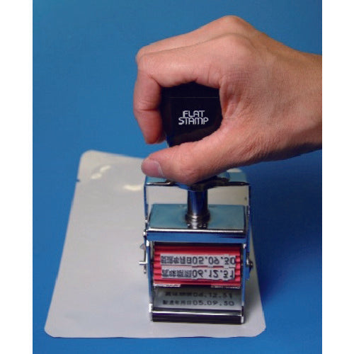 カタログ品番:KJ-A-T032 特長:●フラットスタンプ/ロールマーカーで使用する差替え式ゴム活字です。●印面の裏側が凸面仕様になっていて、印字内容を自由に設定できます。 仕様:●文字サイズ(mm):3●足数(本):2●特注活字:「製造年月日」 材質/仕上:●ゴム