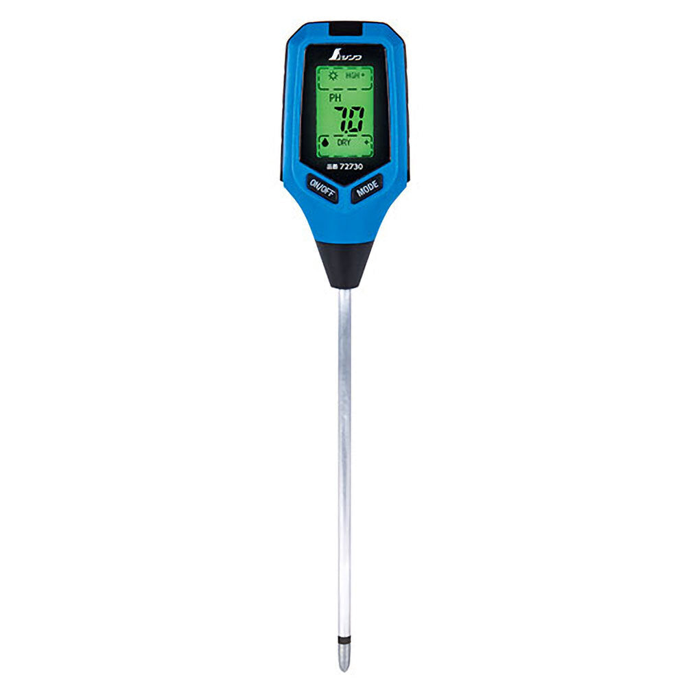 土壌酸度、土壌温度、水分、塩分、育成環境照度の簡易測定に。