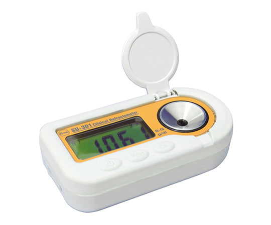 自動温度補正機能付です。サイズ:117×61×30mm 重量:165g 測定範囲:血清蛋白/0.0~12.0、尿比重/1.000~1.080 測定精度:血清蛋白/±0.1%、尿比重/±0.001% 防水性能:IP67 医療機器番号:11B2X10046000015