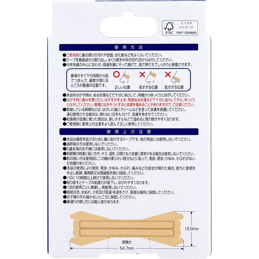 ・本品は鼻腔を拡げるために鼻に貼付するテープです。他の用途には使用しないでください。