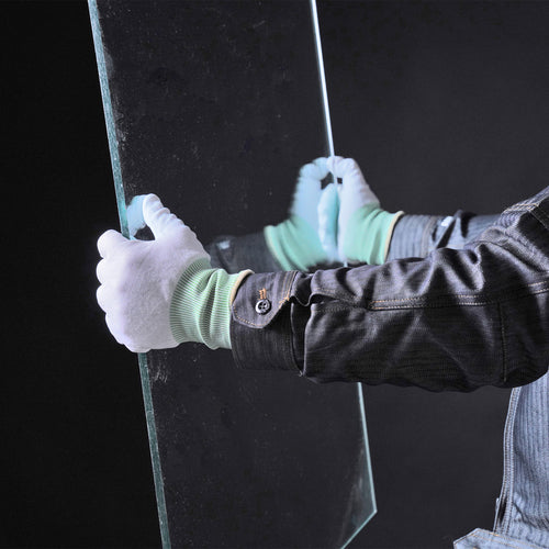 カタログ品番:178-L 特長:●高強度ポリエチレンと金属繊維を組み合わせた、耐切創性に優れた手袋です。●高強度ポリエチレン繊維、金属繊維、18 ゲージの組み合わせにより、柔軟性のある使いやすい薄手でありながら、高い耐切創性能を実現しています。●手のひら側に、ポリウレタンコーティングを施しています。●編手袋に長繊維を使用しておりますので、手袋からホコリの発生が少なくクリーンな作業に適しています。●次亜塩素酸消毒洗浄による繰り返し使用が可能です。●紫外線による劣化が少ないため、屋外作業でも使用可能です。 用途:●ガラス工業、ガラス基板取扱い。●エンジン組立て、自動車工業関連、精密機械工業。●アルミサッシ組立て、非鉄金属などに。 仕様:●色:ホワイト●サイズ:L●全長(cm):24.5●手のひら周り(cm):20.4●中指長さ(cm):8.0●厚さ(mm):約0.8●ゲージ数:18●リストカラー:ブラウン●すべり止め:あり●18ゲージ編●耐切創レベル:X/E(EN388:2016) 材質/仕上:●繊維部:ポリエチレン、金属繊維、ナイロン●すべり止め部:ポリウレタン