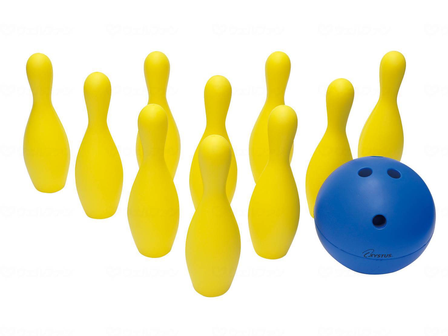 メーカー品番:「B-7994」 サイズ・重量 重量ピン:120g/本、ボール:380g コメント グループで楽しむことができるボウリングセット。やわらか素材なので、手軽に楽しむことができます。 ○ピン10本付、ボール1ヶ付、ケース付 材質・原材料 ピン:ポリウレタン ボール芯材:ポリウレタンスポンジ 表面:特殊樹脂コーティング 規格 1セット 規格詳細 ピン:高さ30cm、ボール:直径20cm
