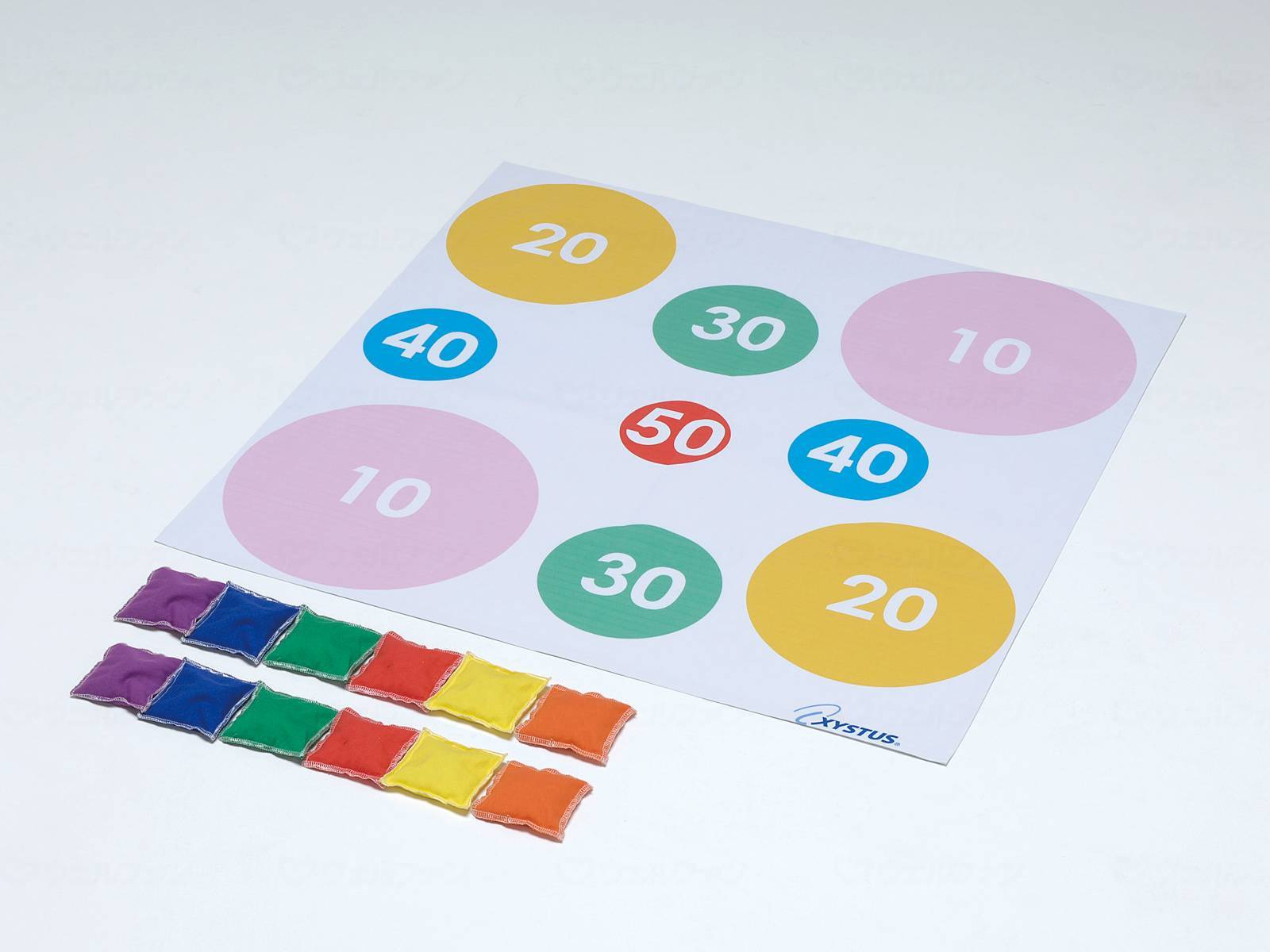 ○シート×1枚、ビーンズバッグ×12ヶ(赤・青・緑・オレンジ・黄・紫各2枚)