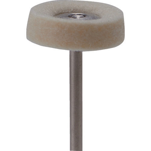 カタログ品番:53151 特長:●高品質の羊毛を圧縮し、切削加工により外径を丁寧に仕上げています。●高品質の羊毛を圧縮し、切削加工により外径を丁寧に仕上げています。●均質性と適度な弾力性が研磨仕上げ面をランクアップさせます。 用途:●各種金属・非鉄金属・貴金属・セラミック・ガラスなどあらゆる素材の仕上げが可能。●ダイヤモンドコンパウンドやポリッシングコンパウンド等の研磨剤を併用してください。 仕様:●タイプ:ソフト●外径(mm):17●幅(mm):5●軸径(mm):2.34●軸長(mm):40●最高使用回転数(rpm):20000●全長(mm):45●形状:平●入数:10本 注意:●安全のため、保護メガネなど、保護具を必ず着用してください。●最高使用回転速度以下で使用してください。