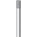 カタログ品番:12179 特長:●インターナル極小径穴加工から外径研削粗加工まで高い研削性と耐久性を発揮します。●厳選された砥粒を最新の電着技術により強固に保持しています。●電着ボンド(メッキにより砥粒の固着)は研削砥粒の突き出し量が大きく、集中度も高いのでたいへん研削力に優れています。 用途:●機械部品・電子部品・精密部品・金型のグラインダー研削加工。●鉄鋼材で焼きの入った材料(HRC60以上)の加工に。炭素工具鋼、高速度鋼、合金工具鋼、ステンレス鋼、耐熱合金、鋳鉄、チタン合金など。 仕様:●粒度(#):220●刃径(mm):3.2●刃長(mm):5●軸径(mm):3●全長(mm):50●形状:円筒●最高使用回転数(rpm):80000●入数:1本●砥粒:CBN 注意:●安全のため、保護メガネなど、保護具を必ず着用してください。●最高使用回転速度以下で使用してください。