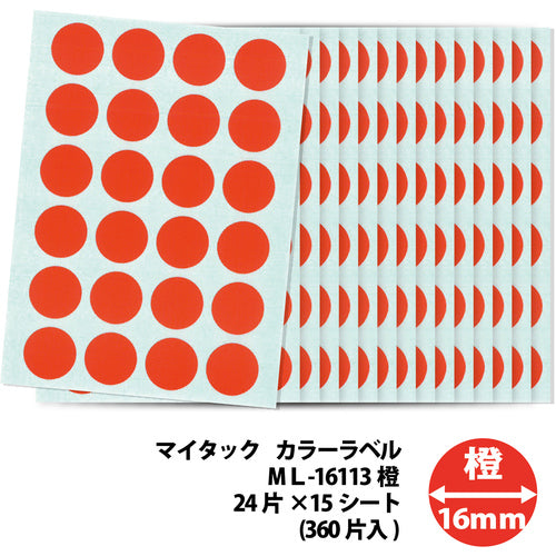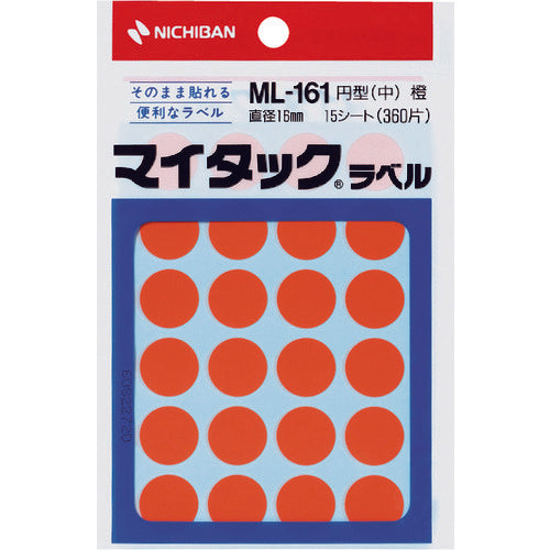 ニチバン マイタックラベル (カラーラベル)ML−161橙 丸16mm ML-16113 1 PK