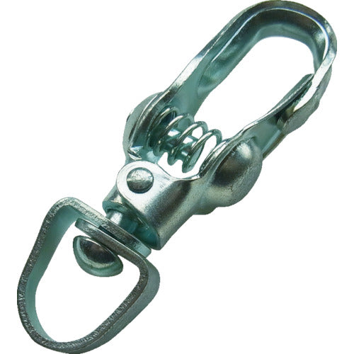 カタログ品番:B-1121 特長:●リング部が回転し捩れを防ぎます。●バネのトラブルが少ないスナップです。●板材を曲げて加工したスナップです。 用途:●チェーンやワイヤロープの先端金具として。 仕様:●使用荷重(kN):0.1●使用荷重(kg):10●L(mm):64●B(mm):11●C(mm):6 材質/仕上:●スチール●表面処理:ユニクロメッキ 注意:●急激に荷重をかける、角度をつけて吊るなど、適正荷重は使用条件によって変わります。荷重をかけすぎないでください。