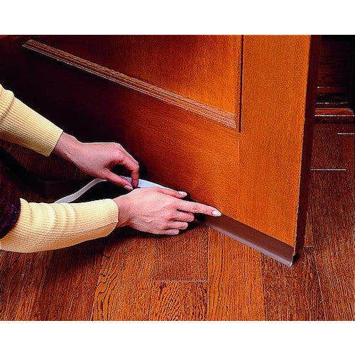 カタログ品番:E0402 特長:●摩擦に強くしなやかな素材です。●粘着テープ付きで取付が簡単です。 用途:●ドア下部のすきま風を防ぐ用に。 仕様:●色:茶●幅(mm):40●長さ(m):0.92●厚さ(mm):1●粘着力(N/10mm):5.7●長さ(mm):920 材質/仕上:●基材:アクリル系エラストマー●粘着剤:アクリル系