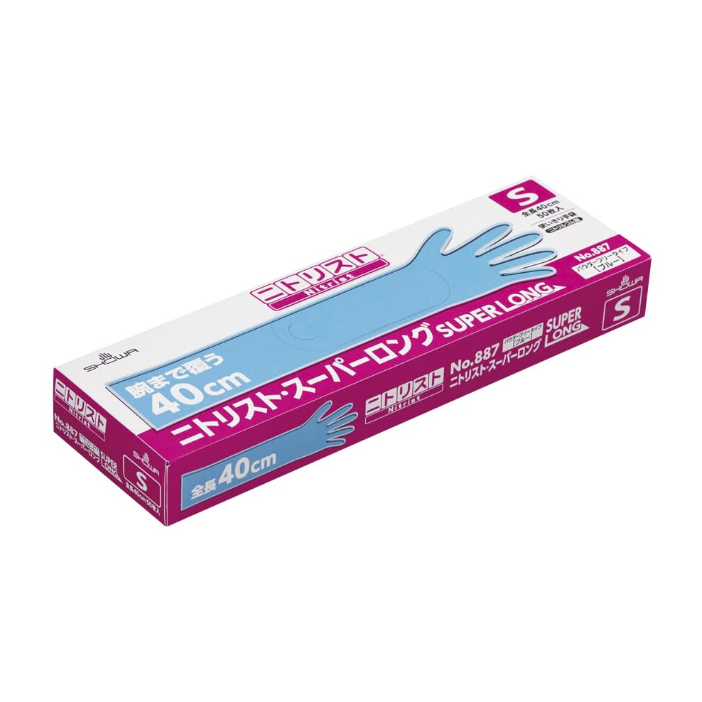 ニトリスト・スーパーロング(ブルー) ニトリル手袋 24-8766-00 ニトリスト NO.887(S)50マイ