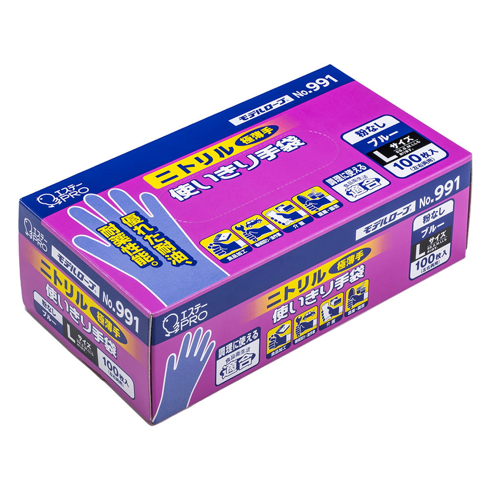 ニトリル使いきり手袋(モデルローブ) ブルー L 1箱(100枚入) No.991 1箱(100枚入)