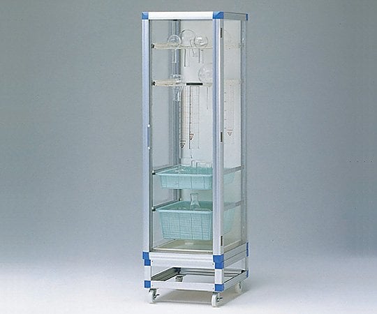 メッシュ棚(別売)はスライドレール式で、スムーズに引き出すことができシリンダーやフラスコの出し入れに便利です。材質:本体パネル/PMMA(アクリル樹脂)板、枠/アルミニウム(アルマイト処理)