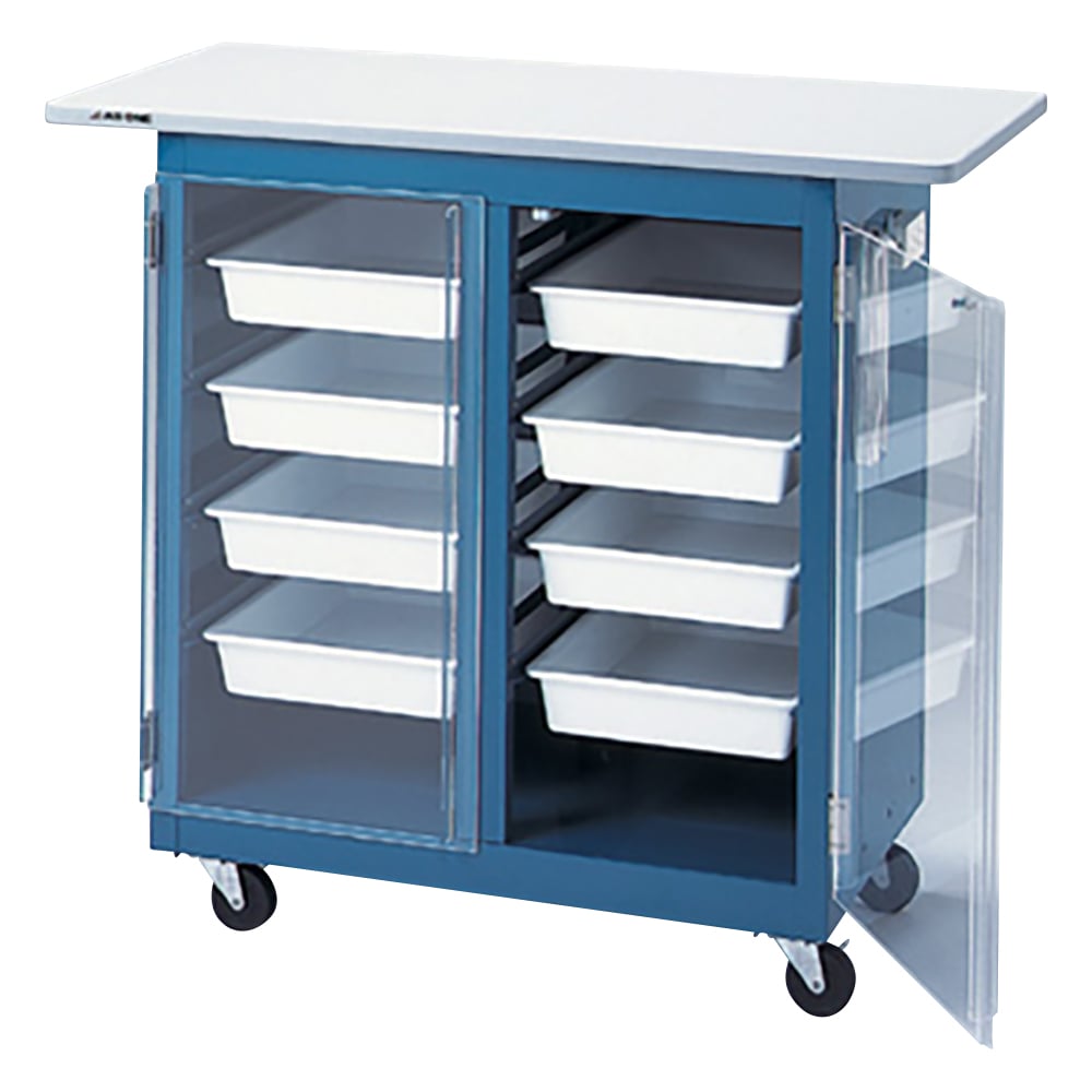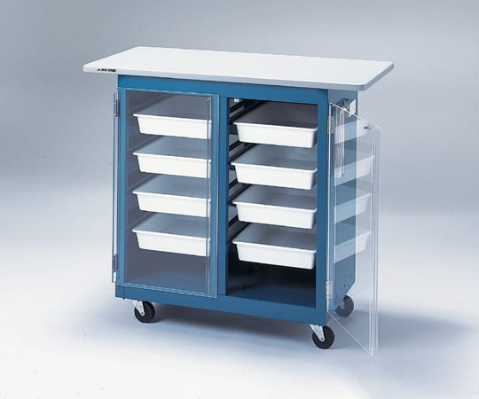 ガラス器具や試料瓶等、小物の収納・分類・整理に適しています。材質:天板/木製合板ソフトエッジ加工(表面抗菌性化粧板)、収納本体/鋼板メラミン焼付、トレー/PP(ポリプロピレン)