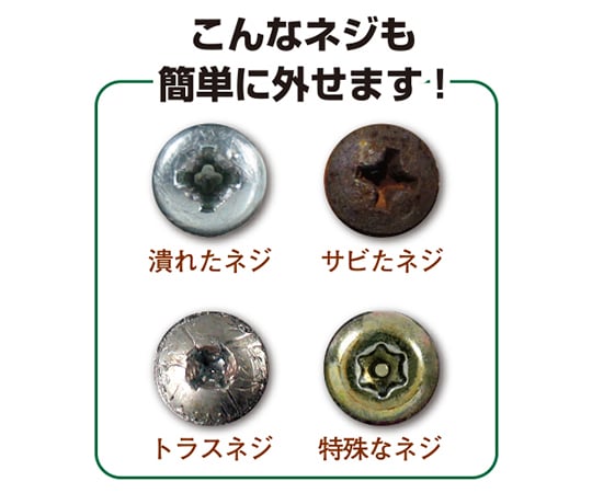 潰れたネジ、錆びたネジを掴んで回せる大型のネジザウルス。 独自の先端形状により、頭の低いネジ(トラスネジ)にも対応。 先端で縦に掴めるため、狭い場所でも作業できます。 先端のヨコ溝は噛み合うように配置されており、極薄板も確実に掴めます。 刃部を搭載しており、針金などの切断ができます。 グリップは耐油性に優れ、環境に優しいエラストマー。手によくフィットするデザイングリップ。 軽量でねじれに強いT型グリップを採用。 潰れたネジ、錆びたネジの取り外しに。 ※タッピングネジ、ドリリングネジ、コーススレッドなどの硬度が高いネジや、接着剤や錆で完全に固着したネジには使用しないでください。対応ネジ頭径:φ3~12mm タテ溝硬度:HRC60±2 切断能力:軟鉄線/φ3.2mm、銅線(単線)/φ3.5mm 全長:204mm 先端幅:27mm 先端長さ:27.7mm 刃長:11mm グリップ幅:53mm 重量:295g 材質:本体/炭素鋼、グリップ/エラストマー
