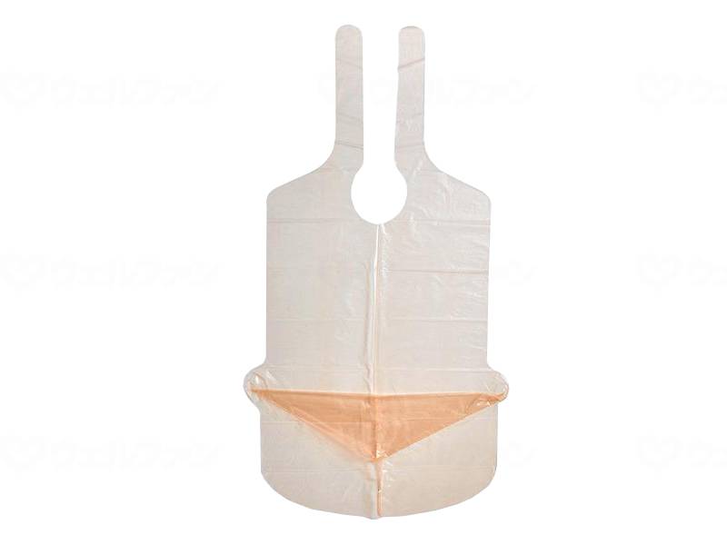 三角形のポケット形状で、食べ・飲みこぼしをしっかりキャッチ使い捨てタイプのエプロンです。
