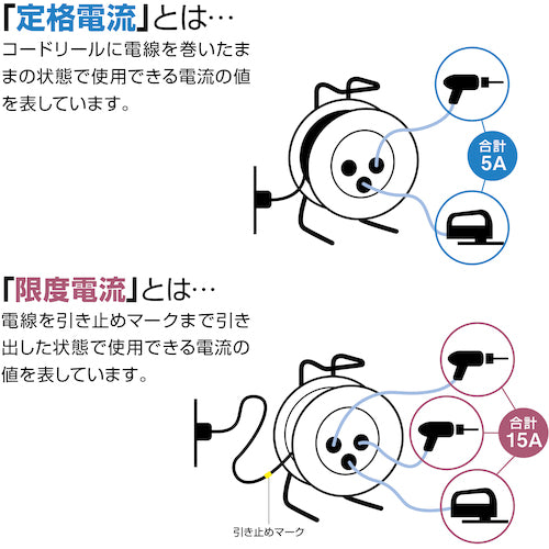 カタログ品番:C-20SIN 特長:●シンプルで使いやすいコードリールです。●コンセント防塵シャッター付:コンセント内部へのホコリの侵入を防ぎます。 用途:●建設・建築現場。●塗装業。●メンテナンス。●土木工事。●DIY。 仕様:●電線種:VCT●電線仕様長さ(m):20●電線仕様太さ([[MM2]]):1.25●電線仕様芯数(C):2●定格電流(A):5●限度電流(A):15●コンセント仕様定格:2P・15A・125V●コンセント仕様形状:[[二相2]]●コンセント仕様個数:4●定格電圧(V):125●本体色:黒●AC100V●コンセント防じんシャッター付 材質/仕上:●円盤:鉄板●電線:ビニルキャプタイヤ 注意:●屋内使用