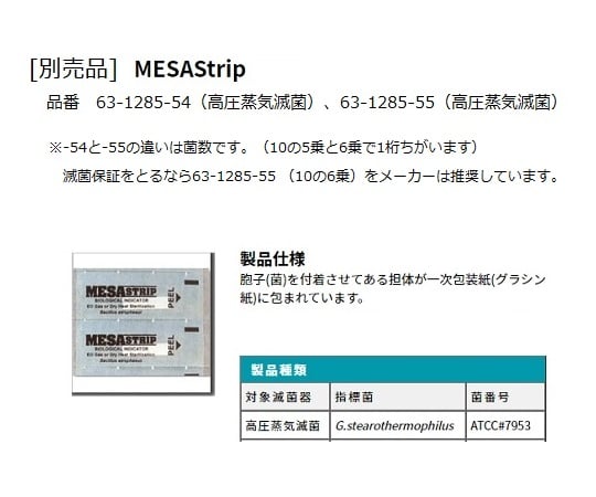 液体培地とpHインジケータがガラス試験管に入れてあり、滅菌処理を施したBIの担体をそのまま試験管に入れ所定の培養温度で培養をすれば容易に滅菌判定ができます。用途:MesaStrip/Apex 高圧蒸気用