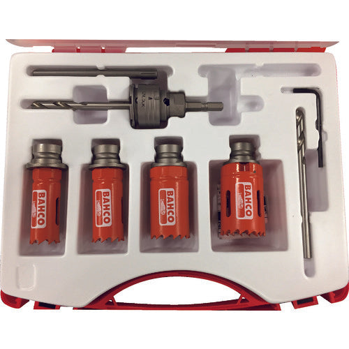 カタログ品番:BAHELHKIM 特長:●バーコのサンドフレックスシリーズです。●各種業界向けのセット品です。●芯ブレが少なく限りなく真円に近い穴あけ加工が可能です。●コバルト含有の刃先で長寿命を実現します。●アーバーに異なる径のホールソーをワンタッチで着脱できます。 用途:●設備、電気工事向け。●被削材:鉄、ステンレス、サイディング材、木材など。 仕様:●品名:電材用ホールソーキット(インパクトアーバー)●セット内容:ホールソー21、27、33mm(21mmのみ2個付属)、インパクトアーバー、予備センタードリル、コア押し出し棒 材質/仕上:●コバルト入りマトリックスハイス 注意:●35mm以上は使用不可です。