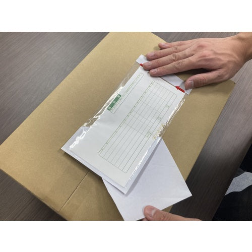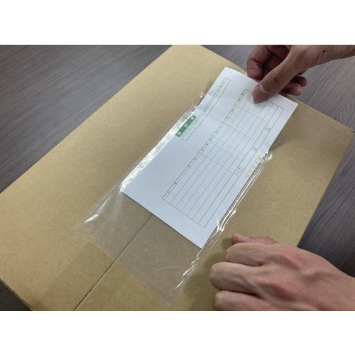 カタログ品番:PA-039T 特長:●長4封筒やA43つ折サイズの伝票などがそのまま入ります。●ミシン目から開封して、簡単に書類を取り出すことができます。●完全密封仕様のため、貼ってから伝票が落ちる心配がございません。 用途:●商品と同時に発送できる伝票入れに。(納品書や請求書など) 仕様:●表示内容:矢印●縦(mm):120●横(mm):240●PE厚さ(mm):0.05 材質/仕上:●ポリエチレン(PE)