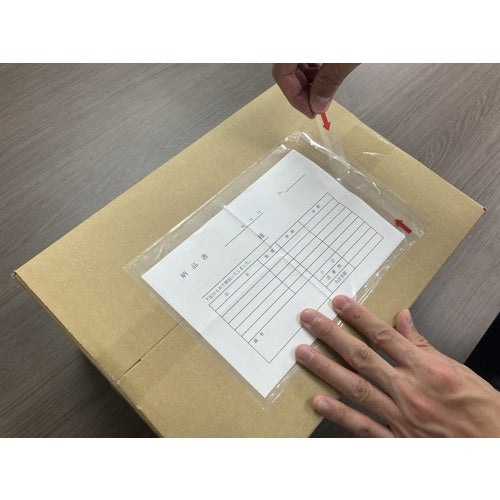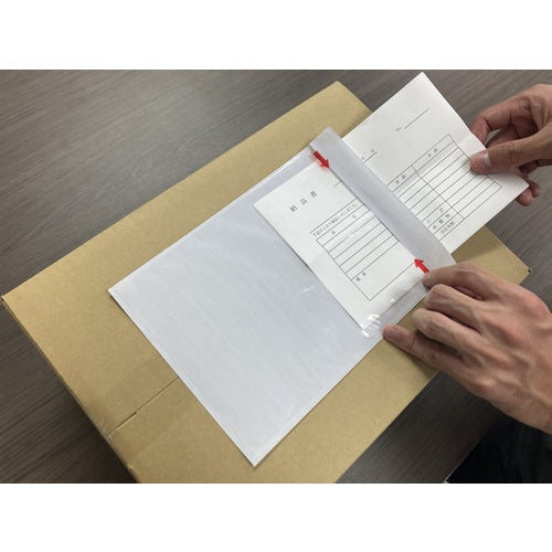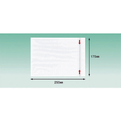 カタログ品番:PA-041T 特長:●A5やA42つ折サイズの伝票・販促物などがそのまま入ります。●ミシン目から開封して、簡単に書類を取り出すことができます。●完全密封仕様のため、貼ってから伝票が落ちる心配がございません。 用途:●商品と同時に発送できる伝票入れに。(納品書や請求書など) 仕様:●表示内容:矢印●縦(mm):175●横(mm):250●PE厚さ(mm):0.05 材質/仕上:●ポリエチレン(PE)