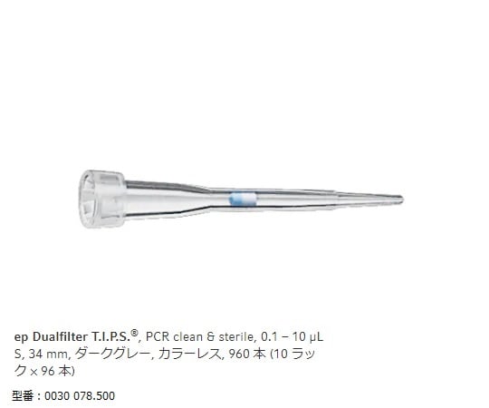 フィルターチップ(ep デュアルフィルター) 0.1~10μL S 96本/ラック×10ラック 0030 078.500 1箱(96本×10ラック入)