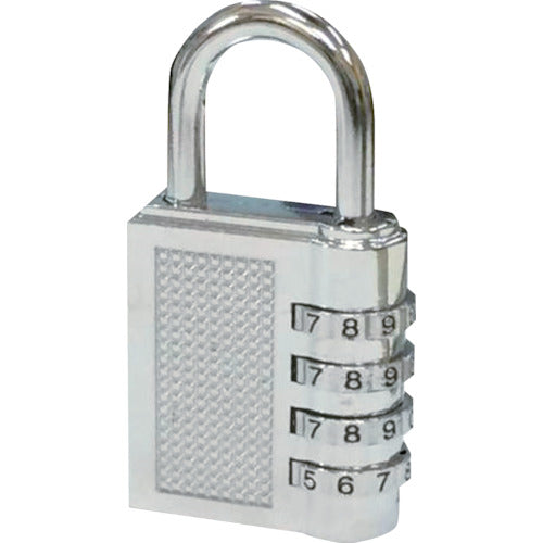 カタログ品番:B-10750 特長:●本格的な4段ロックです。 仕様:●色:シルバー●ダイヤル:4桁●幅(mm):41●ツル径(mm):5.8●B(mm):24●C(mm):19●全長(mm):78 材質/仕上:●本体:亜鉛ダイカスト●ツル:鉄