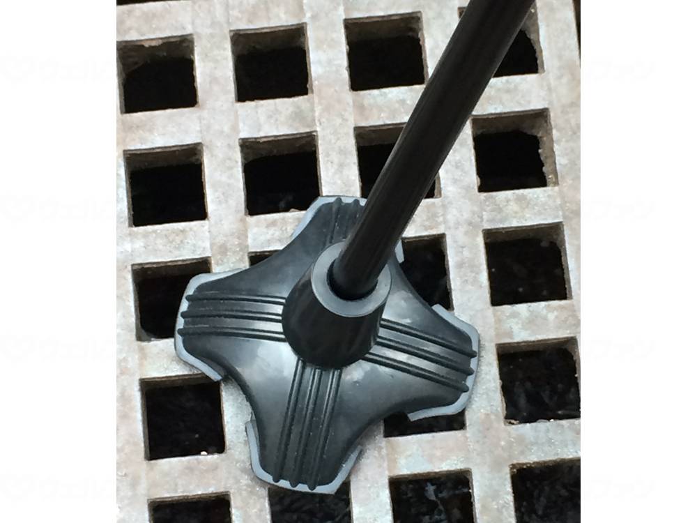 ○斜めから地面を突いてもしっかり地面を捉え続ける、4点DX先ゴムを採用しました。