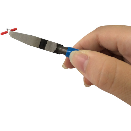 カタログ品番:920-125 特長:●刃が先端部に斜めについているので、ゲートをまたいでの切断や奥まった場所のゲートの切断が可能です。●軟質樹脂のピンゲート・トンネルゲートなどの切断に最適です。●交換用バネはFNS-14(5本入り)です。●作業性の良いバネ付タイプです。 用途:●プラモデル・プラスチック成形品のゲート切断・バリ取りに。 仕様:●全長(mm):125●切断能力(mm)樹脂:φ3●ラウンド刃●ばね付●ソフトカバー付●抗菌グリップ●ROHS対応●刃部鏡面仕上げ●刃幅8mm 材質/仕上:●特殊鋼●グリップ:樹脂 注意:●能力以上の使用はしないで下さい。●電気が流れている物への切断は絶対にしないで下さい。