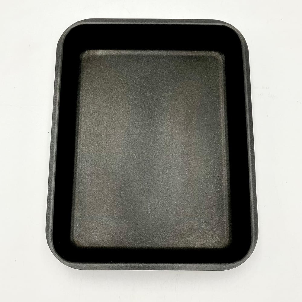 内面にフッ素コーティングを施していますので、非粘着性・耐薬品性・耐蝕性・耐摩耗性に優れています。 縁は長めで持ちやすく、ゴミが溜まりにくいフラットタイプです。 四隅に段加工を施していますので、積み重ねても容易に取り外しできます。 優れた撥水性。型番:F021371 外寸法(mm):301×235×45 底内寸法(mm):255×185 材質:ステンレス(SUS304) 内面フッ素コーティング:PTFE RoHS2 (EU)2015/863 対応 [RoHSについて]