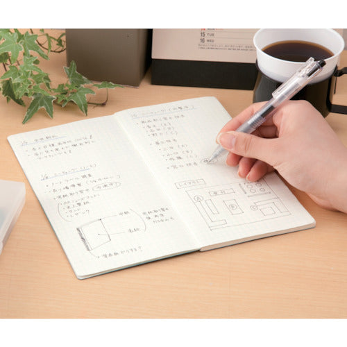カタログ品番:NO-604GC BK 特長:●ビジネスパーソンに最適な、書きやすさと使いやすさを追求した、A4三つ折りサイズのノートです。●書き心地がなめらかなクリーム色の中紙を使用しています。●ページがフラットに開く糸がかり製本を採用しています。 用途:●手軽な持ち歩きノート。 仕様:●色:黒●規格:A4三つ折●タイプ:5mm方眼・40枚●縦(mm):215●横(mm):105●中紙(枚):40●A4三つ折りサイズ●方眼罫(5mm)●綴じ仕様:糸かがり製本●方眼色:グリーン 材質/仕上:●本文:上質紙