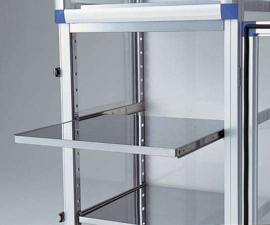 材質:本体/PMMA(アクリル)、枠/アルミサッシ、スライドレール棚/ステンレス(SUS430)