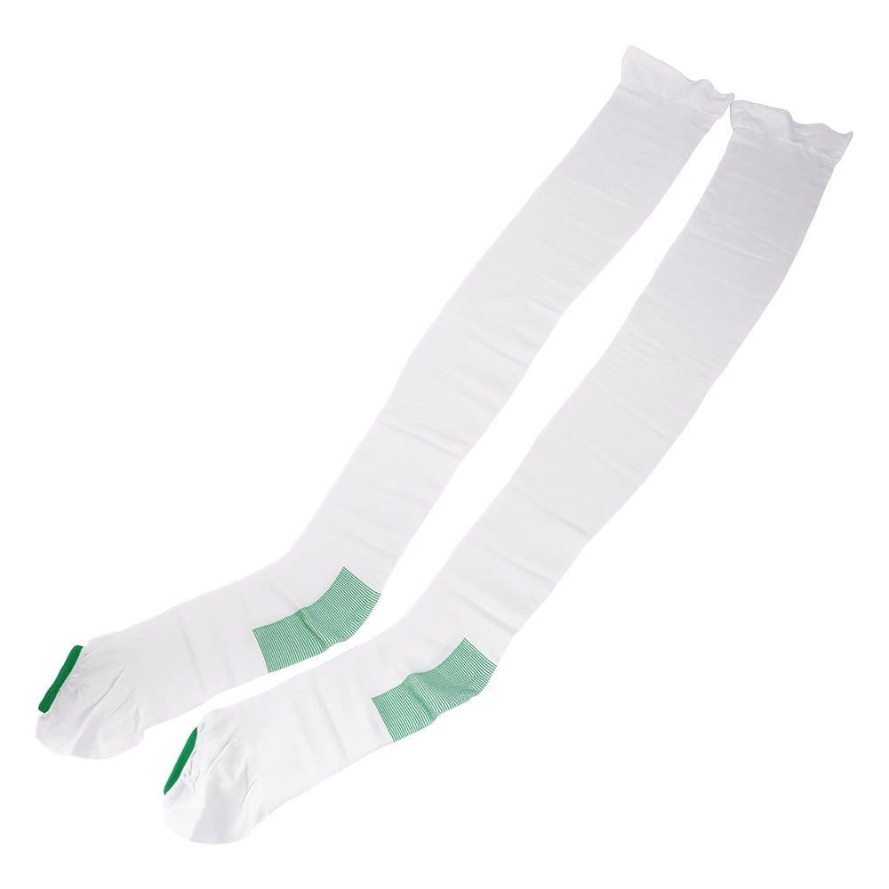 脚の血液還流を促進させるため段階的に着圧を減少させる段階圧力設計です。 術前術後の短期間の使用に適しています。サイズ:足首24~28cm、ふくらはぎ40~48cm、大腿60~67cm 長さ(置き寸法):総丈:59.9cm、足底丈:8.5cm 入数:1足入 素材:ナイロン73.3%、ポリエステル26.7%(抗菌・消臭加工) 圧迫圧:足首/24hPa、ふくらはぎ/19hPa、ひざ上/19hPa、太腿/11hPa 型番:ストッキング LL 医療機器届出番号:29B3X10003000005