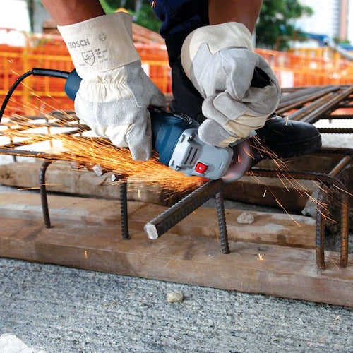 カタログ品番:GWS7-100TN 特長:●再始動防止機構搭載です。●56mmの細径グリップです。●最大出力960Wのハイパワーです。●脱落防止付保護カバー、サイドハンドル標準装備、二重絶縁構造です。●低速・高トルク型です。 用途:●各種金属等への研磨・研削。●タイル、コンクリートへの溝入れ。●錆び落としに。 仕様:●無負荷回転数(min[[の−1乗]]):9300●砥石径(mm):100●本体寸法(mm):280×103×75●消費電力(W):720●電源(V):100(50/60Hz)●コード長さ(m):2.5●砥石寸法(Φmm)外径:100●定格電流(A):7.3●スピンドル径:M10×1.5●取付砥石穴径:15mmφ●本体寸法:280×103×75mm●カーボンブラシ:1619P02892●二重絶縁タイプ 材質/仕上:●ポリアミド樹脂(PA) セット内容/付属品:●サイドハンドル●ピンスパナ●保護カバー●フランジ●固定ナット