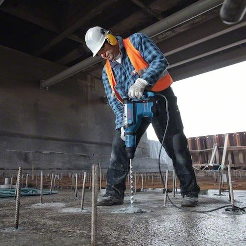 カタログ品番:GBH8-45DV 特長:●バイブレーションコントロールを備えたSDS-maxハンマードリル(はつり兼用)です。●頑丈な金属部品と最適化された潤滑システムにより優れた耐久性です。●3つの防振設計で作業疲労を大幅に低減します。●ターボパワーではつりもパワフルです。●バリオロック機構:フラットチゼル、アスファルトカッター、スコップ等を装着後でも、角度調整が可能です。●ダイヤル式電子無段変速で回転数、打撃数を任意にコントロールできます。●コンスタントスピード:負荷が加わってもモーターの回転数を維持。作業効率がアップします。●サービスサインランプ:カーボンブラシが切れる約8時間前に、ランプの点灯で交換時期をお知らせします。 用途:●コンクリートへの穴あけ作業、はつり作業 仕様:●無負荷回転数(min[[の−1乗]]):155〜275●打撃数(min[[の−1乗]]):1370〜2430、1460〜2520●本体寸法(mm):540×275×110●電源(V):100(50/60Hz)●コード長さ(m):4●チャック能力:SDS-max●定格電流(A):14●消費電力(W):1370●軽はつりモード:あり●正転逆転機構:なし●入力電源(V):100(50-60Hz)●穴あけ能力(mm)コンクリート:45●能力:ドリルビット45mmΦ、コア125mmΦ●電源:100V(50-60Hz)●電源コード長さ:4m●打撃力:4.6〜10/10.7J●打撃数:(ドリルモード)1370〜2430min[[の−1乗]](回/分)、(はつりモード)1460〜2520min[[の−1乗]](回/分)●本体寸法:540×275×110mm●振動3軸合成値:ハンマードリル時8.0m/s[[の2乗]]、振動3軸合成値:はつり時7.0m/s[[の2乗]] 材質/仕上:●ポリアミド樹脂(PA) セット内容/付属品:●サイドハンドル●キャリングケース
