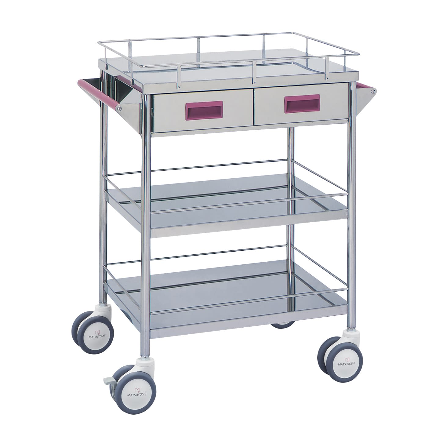 マツヨシ カラー回診車 引出付三段 カート(回診車) 20-4002-05 MATSUYOSHI MY-1107P(ピンク)W750MM