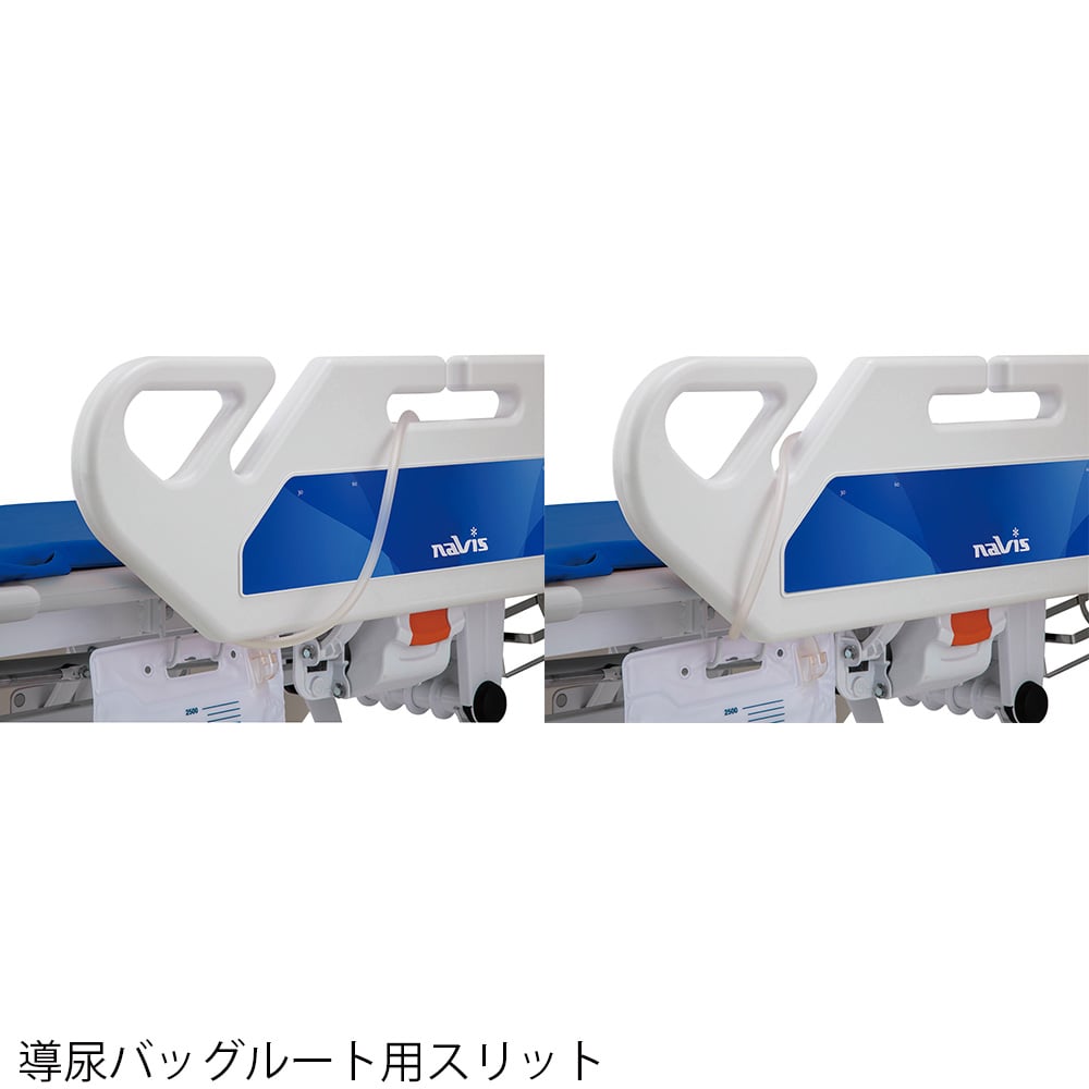 寝台部下の左右にドレーンバックを掛けられるフックを備えています。