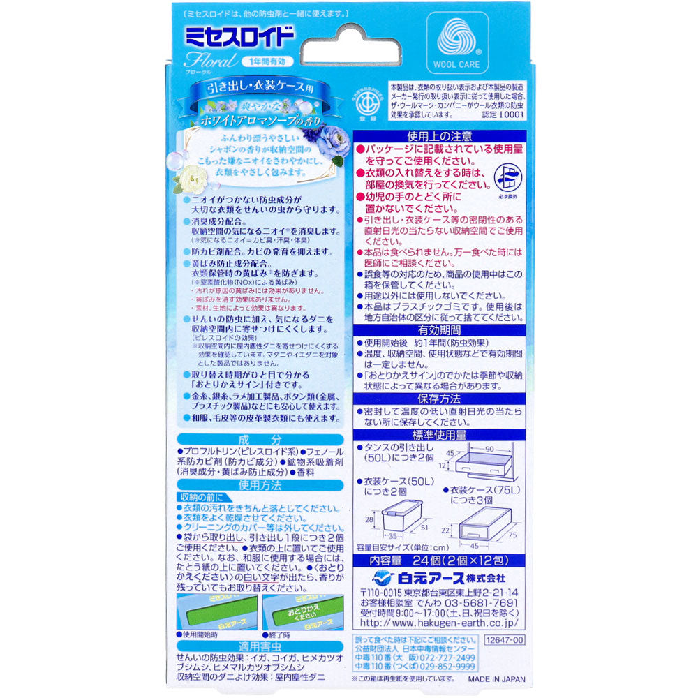 ミセスロイドフローラル 防虫剤 引き出し・衣装ケース用 1年 ホワイトアロマソープの香り 24個入 1 個